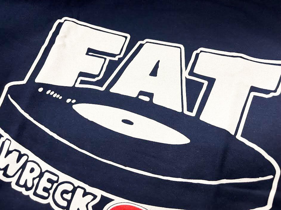 モントリオールでのNOFXファイナルショーで販売されたカナディアンズFATロゴ・マッシュアップTシャツ。ネイビーカラー。