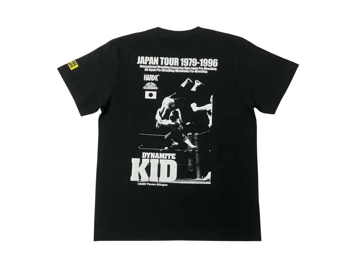 ダイナマイト・キッド・ジャパンツアーと称してコアチョコ流にデザイン!伝説の蔵前国技館三つ巴戦(ザ・コブラ、デイビーボーイ・スミス)を制しWWFジュニアヘビー級王座を獲得した姿、UK PUNKと題された純白のボディの一枚、そしてコラージュされた最高のラグラン!