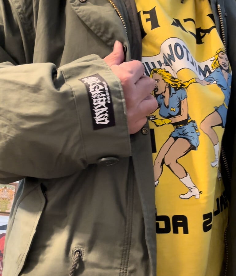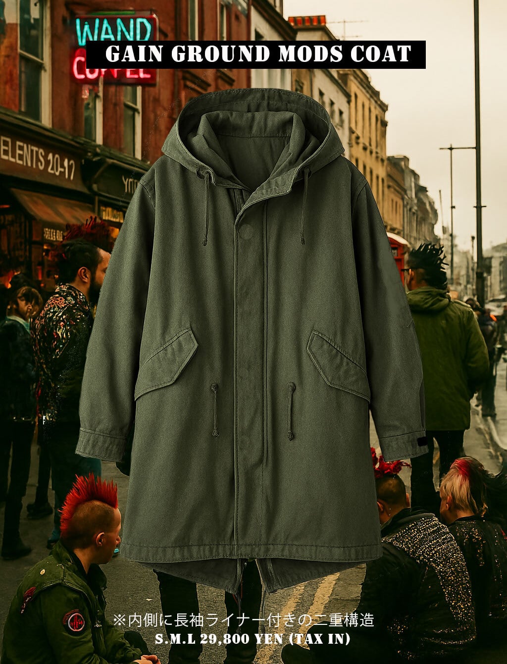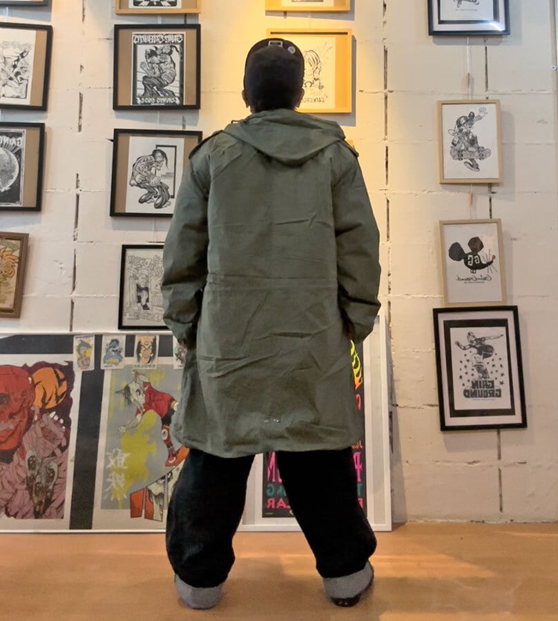 そのボタンを外すと、俗にいうモッズコートのシンボル的な、ペンギンっぽいシルエットになります。
