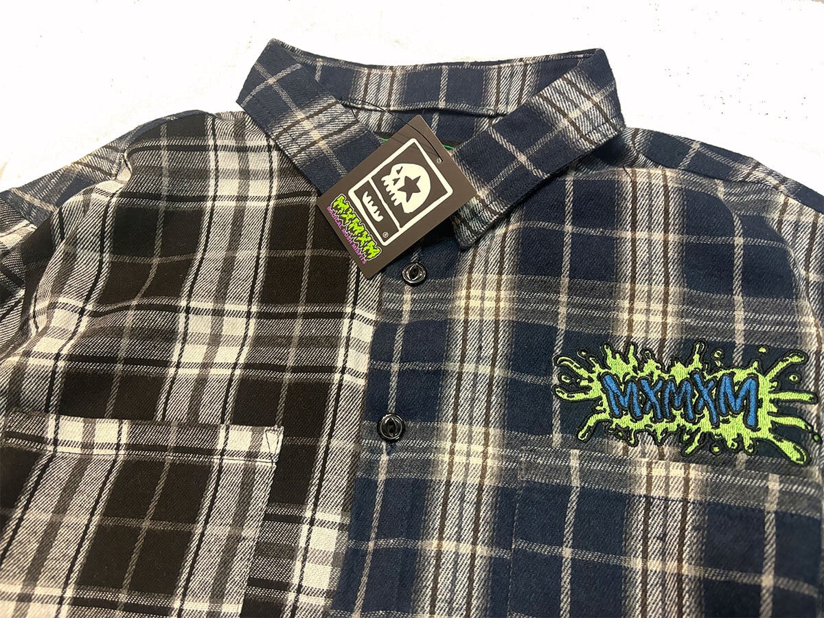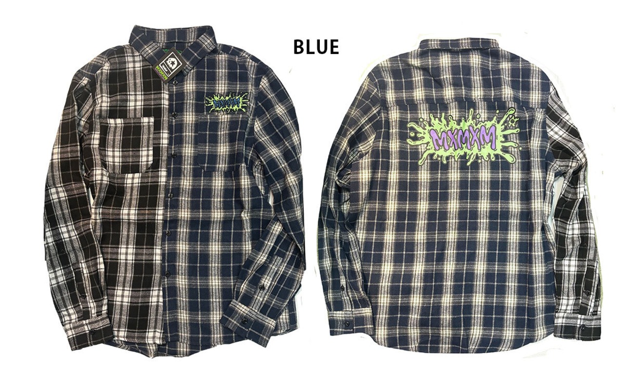 季節を問わず軽く羽織れる、左右チグハグ配色の遊び心あふれるネルシャツです。