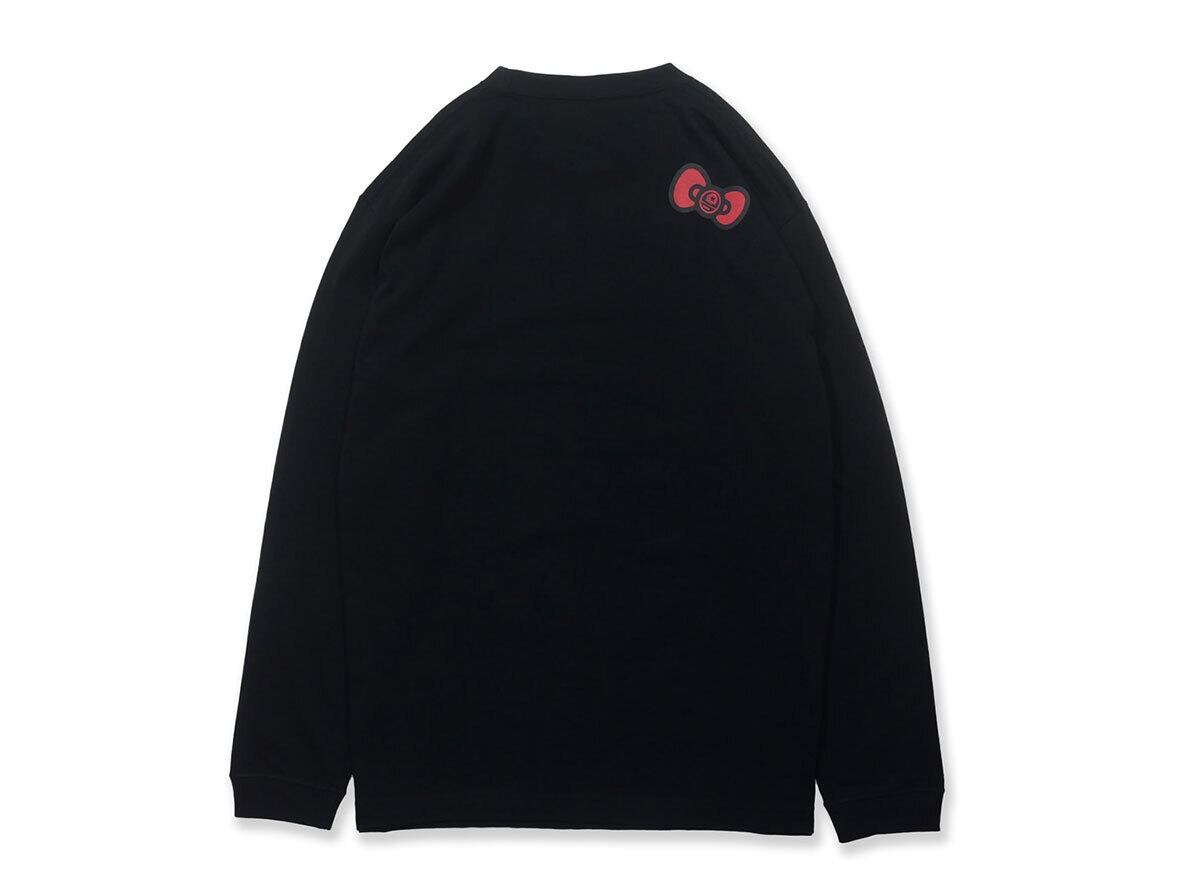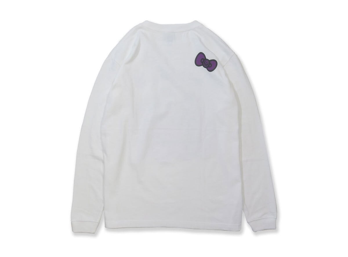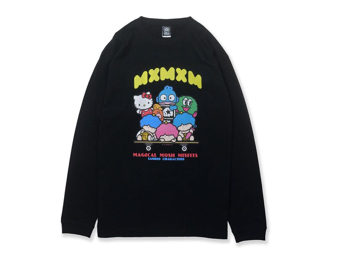 フロントには、スケートボードに乗った “ゴロピカドン・ハローキティ&モーリー・ハンギョドン&さゆりちゃん”、 そして集中ポーズのかわいいちゃん&MxMxMドクロ、 バックにはMxMxMリボンのワンポイントを落とし込んだLONG TEEです。